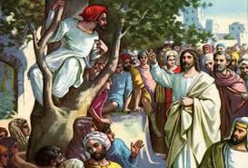 Zaqueu era um publicano e era o chefe deles, envolvido em corrupção na época, e certo dia ouviu falar de Jesus, o Homem que transformava vidas, que curava e libertava. E Zaqueu procurava ver quem era Jesus, mas a multidão o impedia, por ser pequeno, subiu em uma pequena árvore, e procurava dentre a multidão. Mas antes que ele reconhecesse Jesus, Jesus o viu e o chamou pelo nome, e deu ordem para que descesse e ainda disse que repousaria em sua casa.